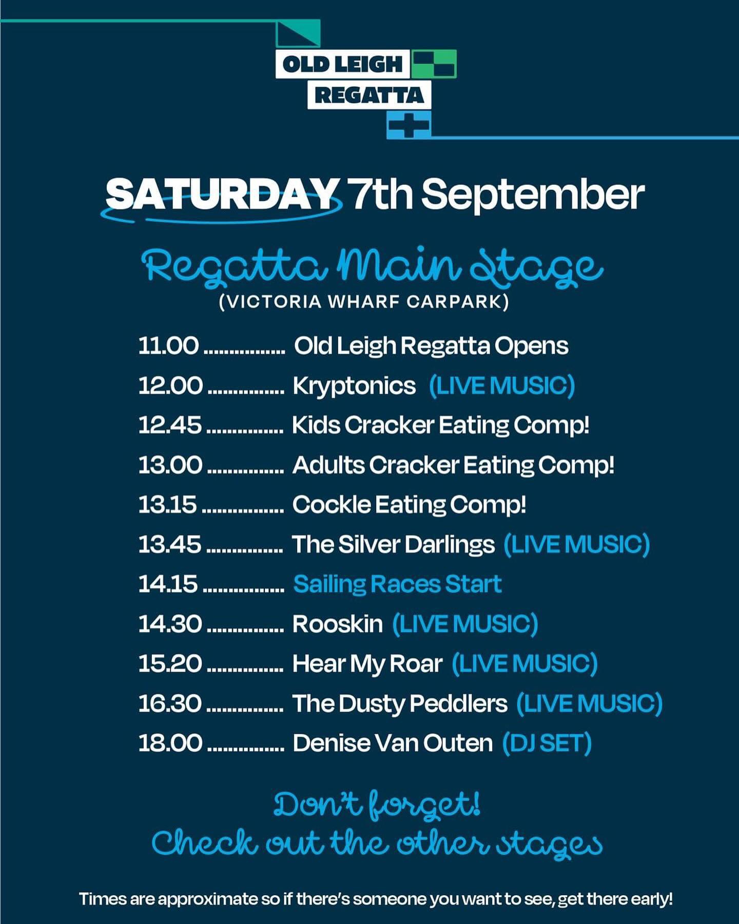 Old Leigh Regatta is a weekend of family fun across Old Leigh, organised by the Old Leigh Sea Scout Groups (3rd Chalkwell Bay and 4th/6th Leigh-on-Sea). The road is closed and filled with stalls, games, entertainment, live music, sailing and competitions between the Sea Scout Groups.